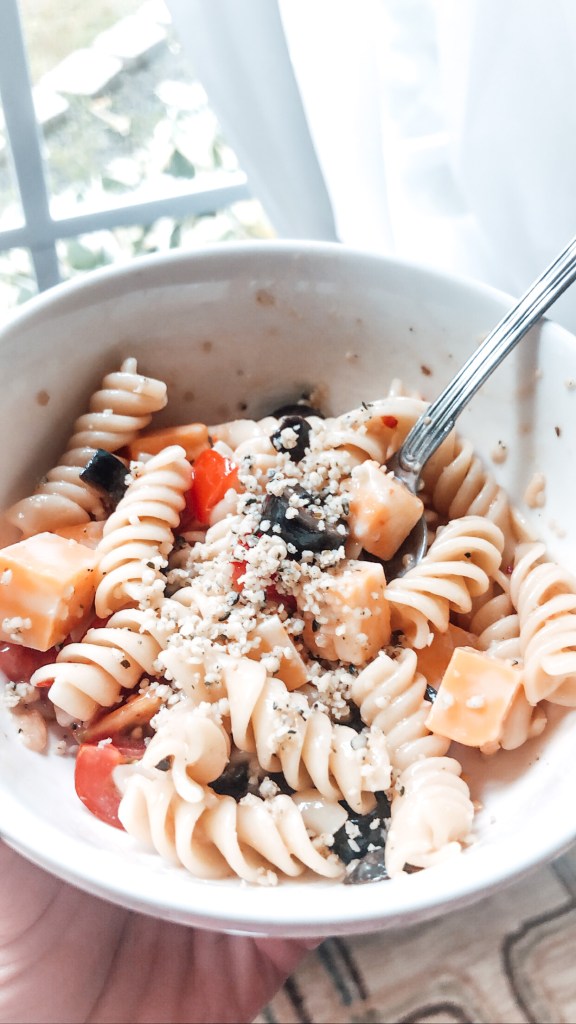 The best part of this recipe is that you can add or omit any mix-in that you want! Don’t like olives? Don’t add them. Want some roasted red peppers in there? Do it! I have even chopped up pickles before and added them in for some texture and crunch. The possibilities are endless!