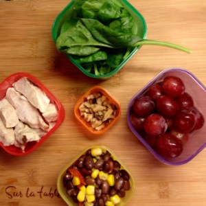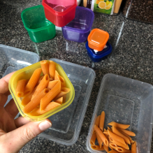 I love this pasta salad at a BBQ alongside my baby back ribs, but it is also perfect for weekly meal prep. Whip up a batch during your meal prep time along with some turkey meatballs and steamed broccoli, then portion out for lunch each day. I use portion-control containers and fill up the CARBS container (it’s the yellow one, about 1/2 cup serving) with pasta salad so that I don’t go overboard. Here’s an example of how I use portion-control containers to prep my lunches…